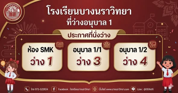 โรงเรียนบางนราวิทยาเปิดรับสมัครรอบที่ 2 ที่นั่งใกล้เต็มแล้ว