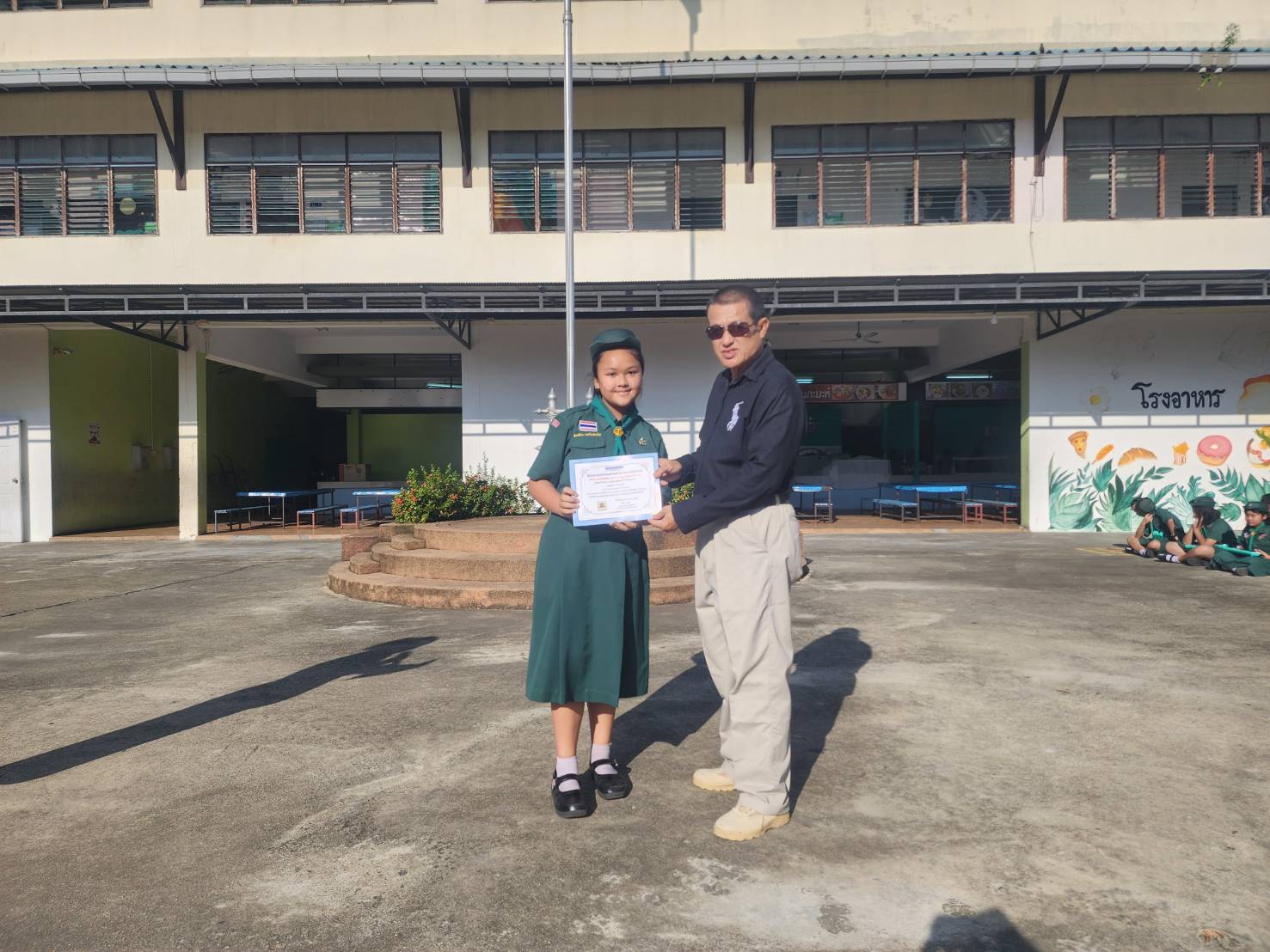 โดยในวันนี้ ท่านรองผู้อำนวยการ นายณรงค์ จงแจ่มใส ได้ให้เกียรติมอบเกียรติบัตรเพื่อเป็นการเชิดชูเกียรติ และสร้างขวัญกำลังใจให้กับนักเรียน