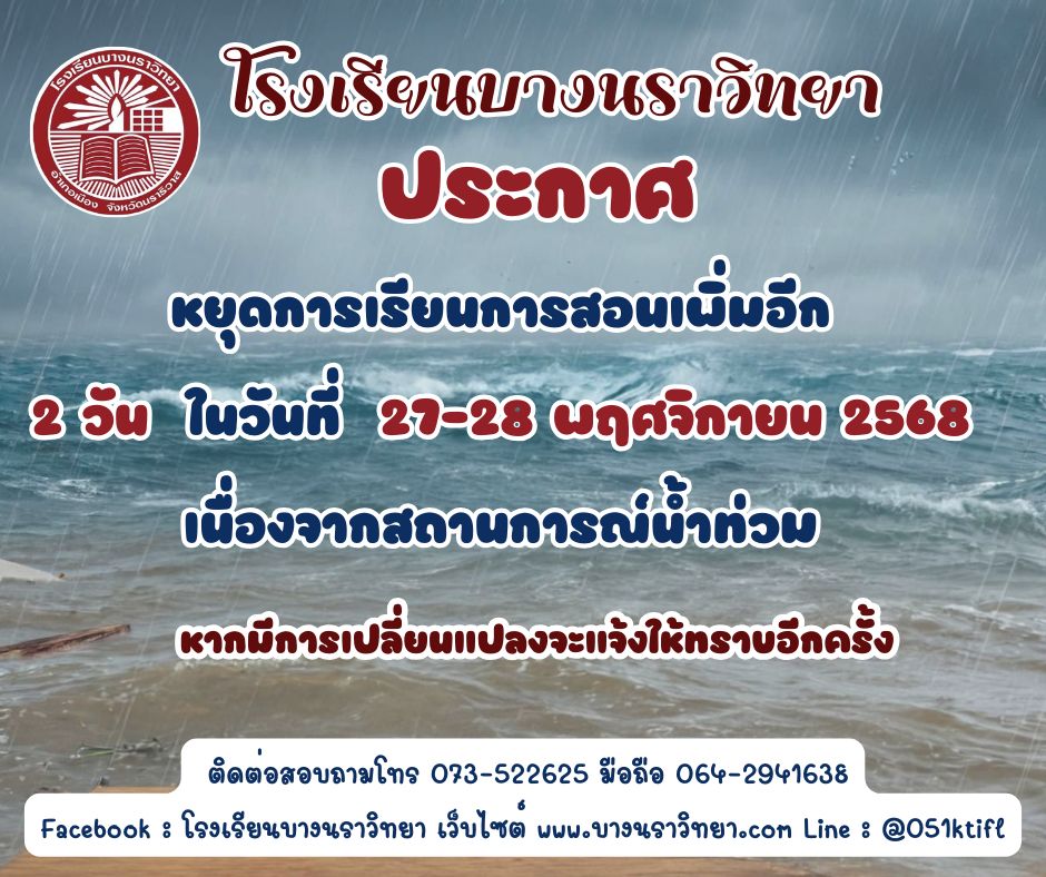 ด้วยความห่วงใยจากโรงเรียนบางนราวิทยา ผู้บริหาร คณะครู และบุคลากร โรงเรียนบางนราวิทยา ทั้งนี้ หากมีการเปลี่ยนแปลง โรงเรียนจะแจ้งให้ทราบต่อไป ขอให้ติดตามประกาศจากเพจประชาสัมพันธ์โรงเรียนอย่างใกล้ชิด