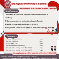 Bangnarawitthaya School is seeking for a Foreign English Teacher
