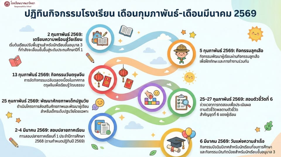 กำหนดการมอบตัวนักเรียนและประเมินศักยภาพนักเรียนใหม่ประจำปีการศึกษา 2569