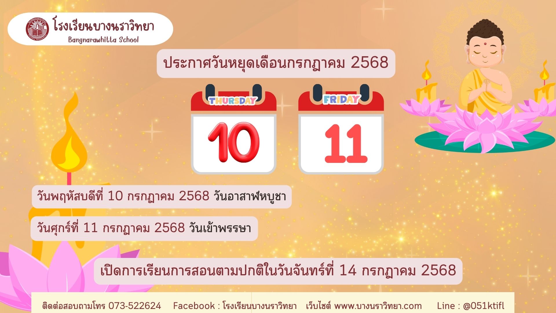 ประกาสวันหยุดเดือนกรกฎาคม 2568
